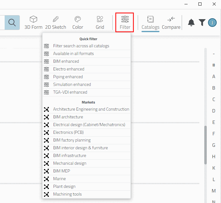 cadenas_threads.cip.Sous la fonction de filtrage, différents marchés sont définis. Dans le cas contraire, ils ne seront pas visibles. En outre, d'autres filtres rapides sont disponibles.