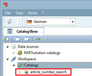PARTsolutions catalog: When clicking on the search button , a dialog box with a listing of installed PARTsolutions catalogs is opened. Select the desired catalog and confirm with .