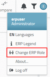 Si différents rôles ERP sont disponibles pour un utilisateur, la boîte de dialogue Sélectionner le rôle ERP [Select ERP Role] s'ouvre après le login.
