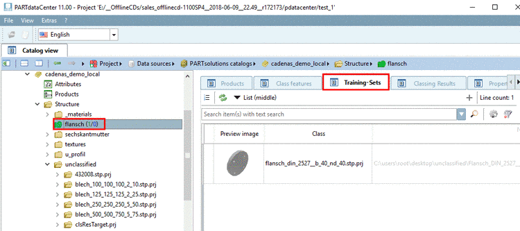 Create Training-Sets. For this, select a suited part and draw it into the desired directory under Structure via Drag&Drop.