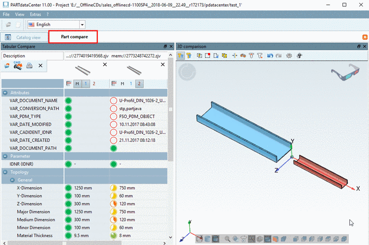 Beside the 3D view, you can comfortably compare attributes and topological parameters.