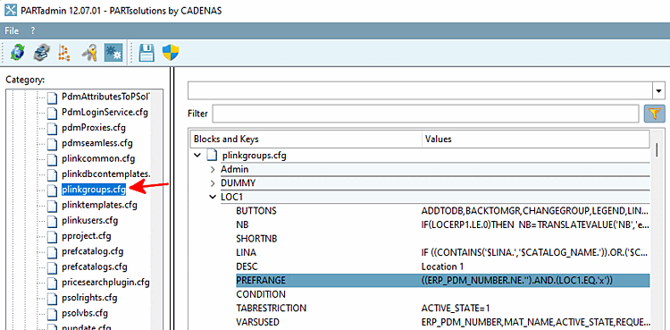 Certains réglages spéciaux ne peuvent être effectués que via PARTadmin -> Catégorie Fichiers de configuration [Configuration files] -> $CADENAS_SETUP -> plinkgroups.cfg.