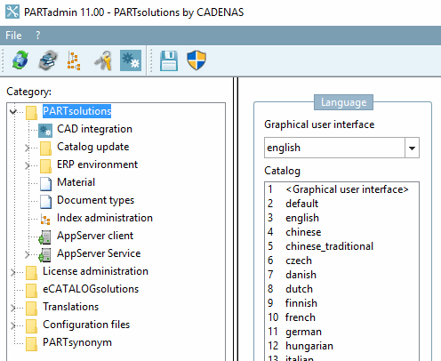 Dans PARTadmin, la langue du catalogue souhaitée doit être réglée (soit par défaut de l'interface du programme, soit explicitement).
