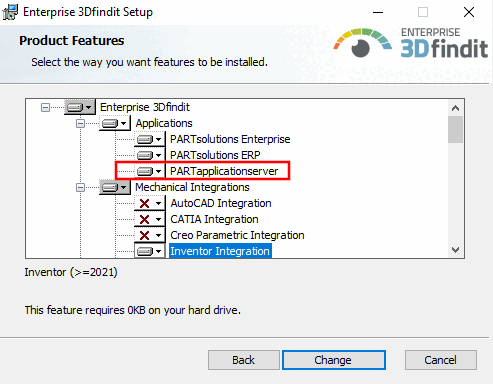 Le PARTapplicationServer est proposé pendant la routine d'installation sous Applications comme partie de l'option PARTsolutions Enterprise ou explicitement sous PARTapplicationserver.