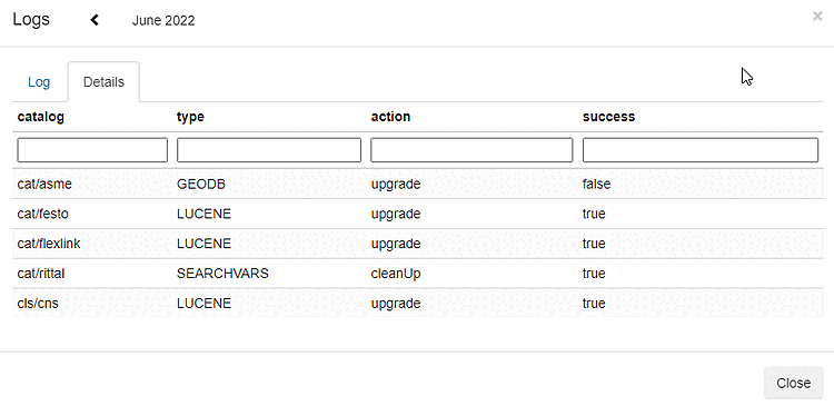 En cliquant sur l'icône en forme de flèche, vous pouvez voir quels catalogues et quels index ont été mis à jour.
