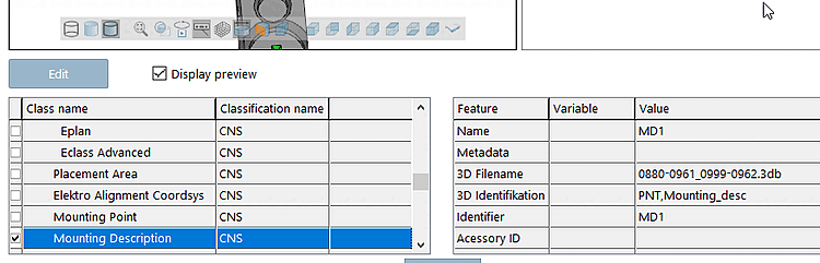 Classez le point d'attache comme Mounting Description (CNS_CP|4|7 ). (Il est préférable qu'un point d'attache ait été créé spécifiquement dans ce but).