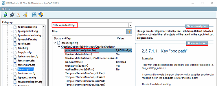 Pour garantir la fonctionnalité de base, les clés "importantes" doivent être adaptées dans tous les cas.