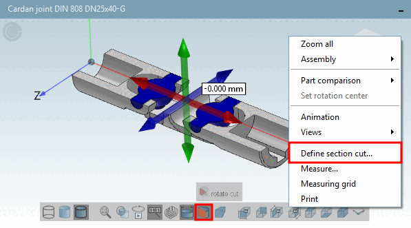 ou cliquez sur la commande Définir le plan de coupe... [Define section cut...] dans le menu contextuel de la