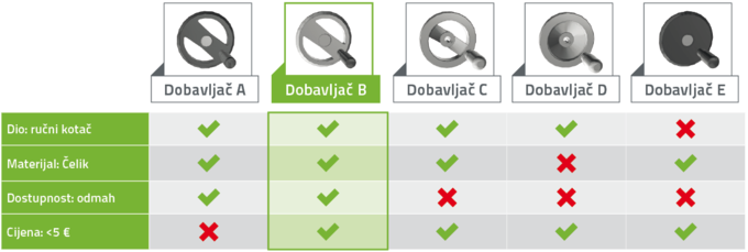 CADENAS PARTsolutions nudi kupcima i inženjerima mogućnost usporedbe tehničkih značajki neke komponente naspram komercijalnih značajki. To je osnova za izbor savršene komponente.