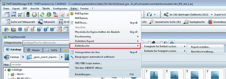 This search detects fitting unmachined parts for the production of a finished parts. For example: An engineer is looking for a special flange. Then he wants to search for already existing unmachined parts, from which the flange can be produced, in order to avoid the redundant creation of a new unmachined part. This process is very time consuming, because the parts have to be overlaid in the CAD one after another.