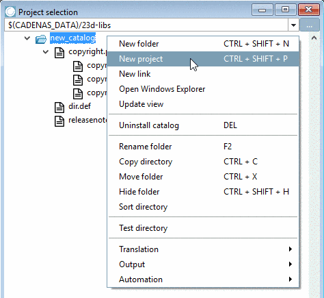 The projects copyright.prj and categories.prj are mandatory for each catalog. In order to prevent them from being copied from one catalog to another erroneously, now they are available as project templates.