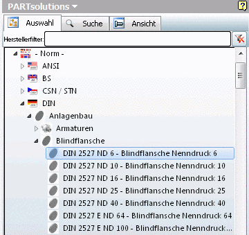 In dialog area search in following directories, activate the desired catalogs or subdirectories as well. Here in this example, the Standard catalog shall be searched for possible purchased parts.