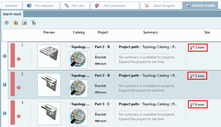 If you perform a search now, in the column Size, the sheet thickness is displayed in addition.