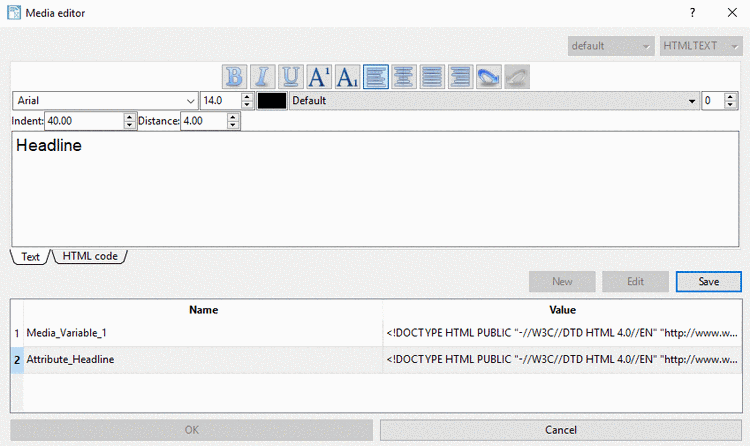 -> In the lower half of the dialog box the already existing Media Variables of the selected type are displayed.