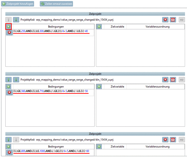 For example, if a project shall be split into two projects, then you can add further projects with this function, whereon then a mapping can be performed. See Section 6.10.2.4.9, “Splitting of project with value range variable in two projects with fixed variable”.