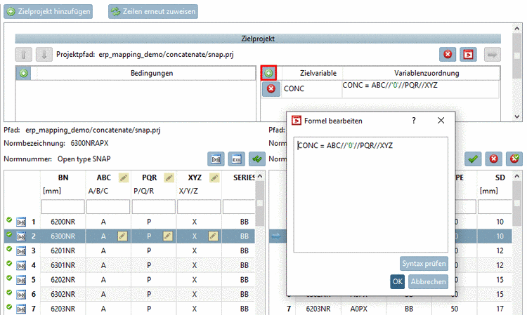 The dialog area Target variable / Variable assignment is used if there are variable changes (possibly with value changes in addition). Partly there is an automatic detection.