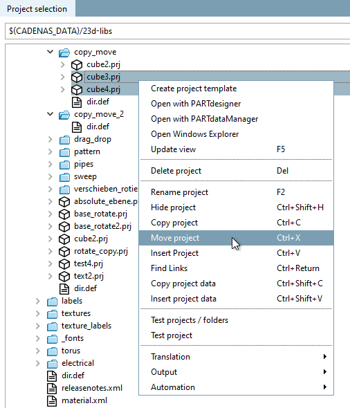 cursor.The dialog Move project is displayed. Compare above.