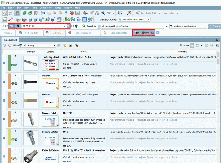 Standards: Standardization system provided by CADENAS. Structured in three parts according to DIN number.