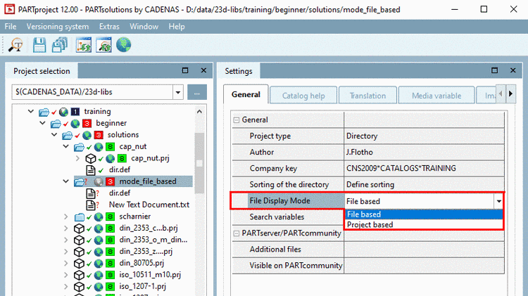 Via option File Display Mode, the behavior concerning display in the directory tree under Project selection and the behavior concerning SVN checkin is controlled.