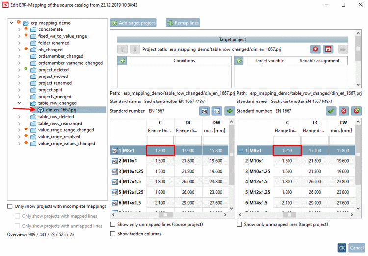 In the table, in a row, a value of variable C has been changed. Such changes are automatically recognized.