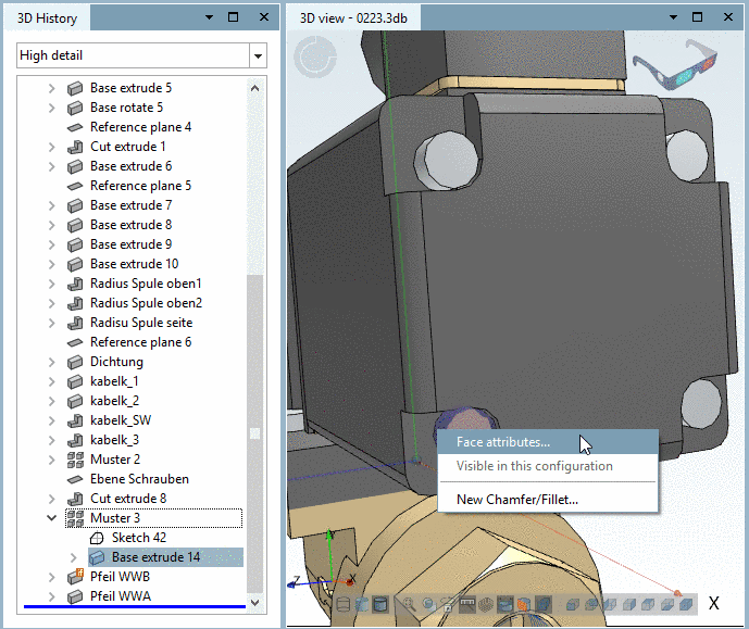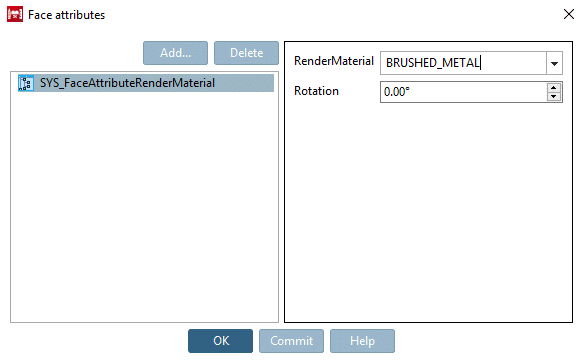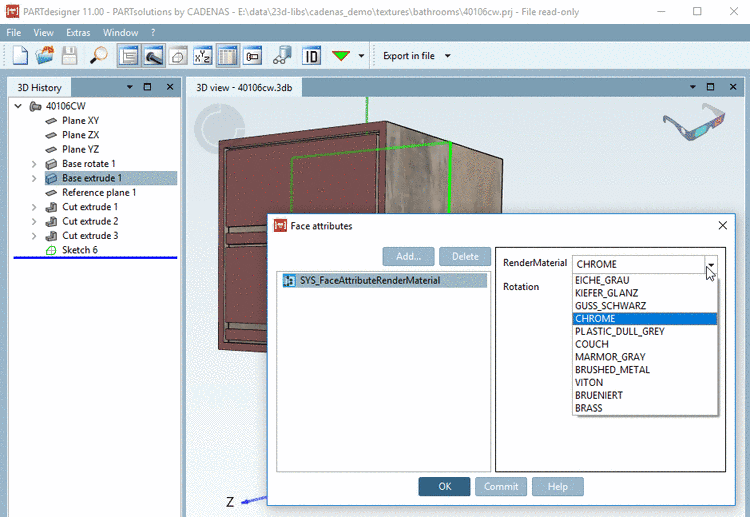 Applied Render materials are also available in PARTdesigner in the dialog box Face attributes.