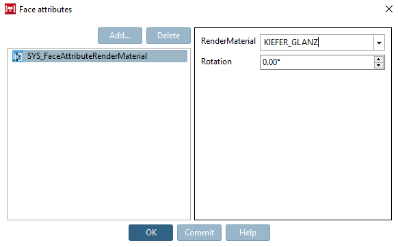 In the dialog box Face attributes, choose the desired RenderMaterial.