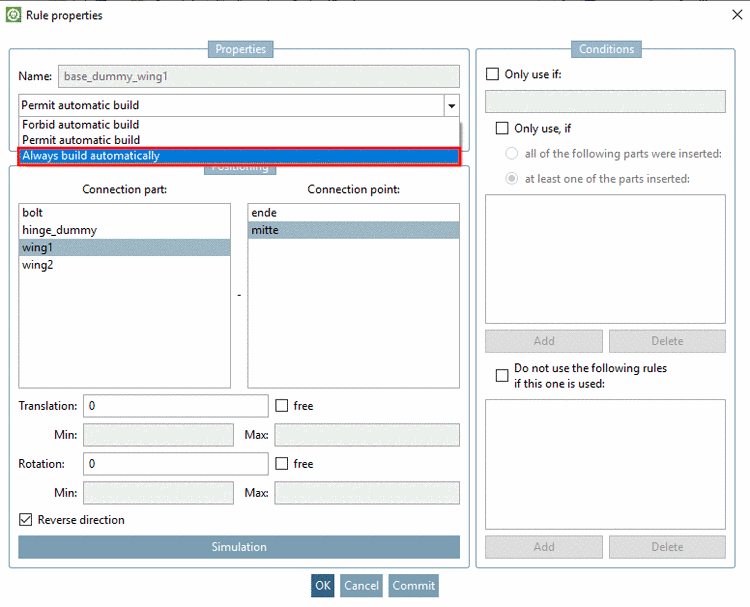 This means, in the Rule properties dialog box the Always build automatically option must be set in every rule in an assembly.