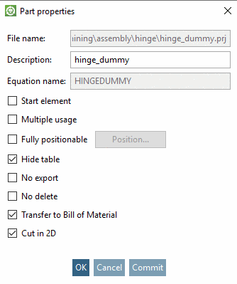 In the Part properties dialog box the Hide table checkbox has to be activated for all parts except the dummy part.