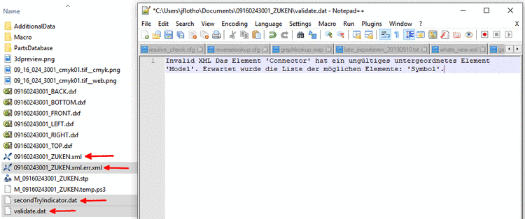 The next figure shows the typical output of a failed export due to missing global connector symbols.