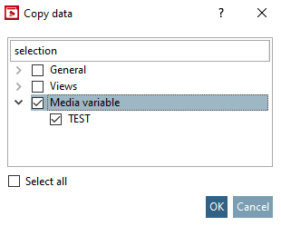 Activate the option Media Variable, in order to copy all available variables or activate one or several variables separately.