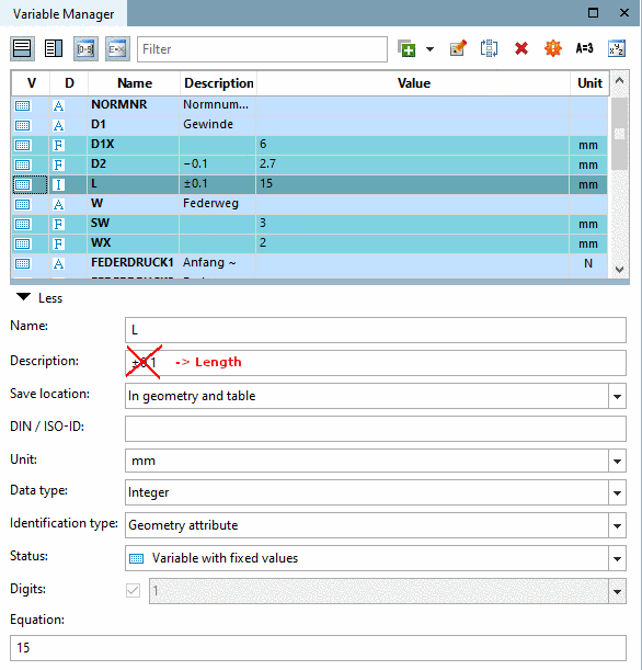 Description (Variable description): In the Variable Manager, information to ease identification should be entered.