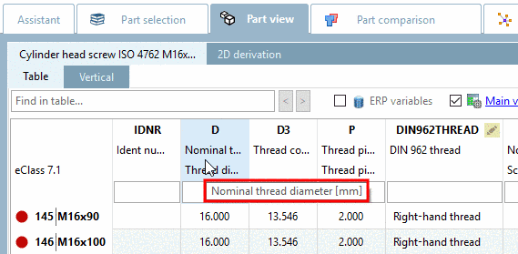 The content of the field Description is displayed in PARTdataManager, in the table's column header as subtitle.