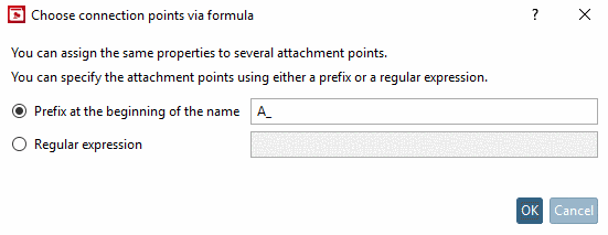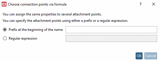 If a large number of connection points has to be classified in the same way, using a prefix or regular expression makes sense. Then the specified number of points has to be classified only one time for all points. For this use the context menu command Choose connection points via formula.