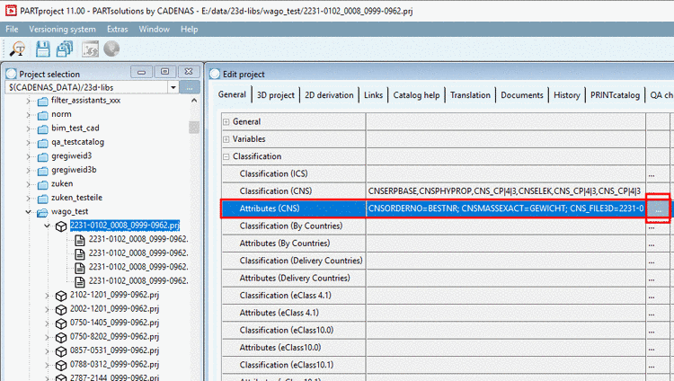Select the project file and open the attributes of CNS Classification by clicking on .
