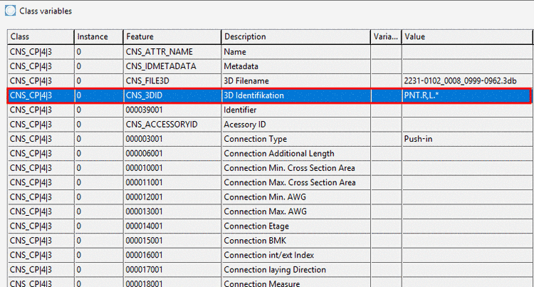 For products with different classifications for groups of connection points the use of the function Choose connection points via formula is recommended, where connection points with the same classification get the same prefix.