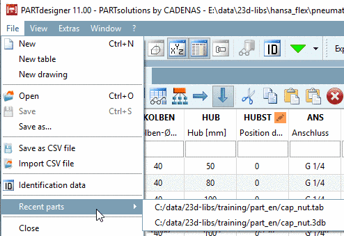 List of recently opened files - Selection by a single mouse click on a line in the listing.