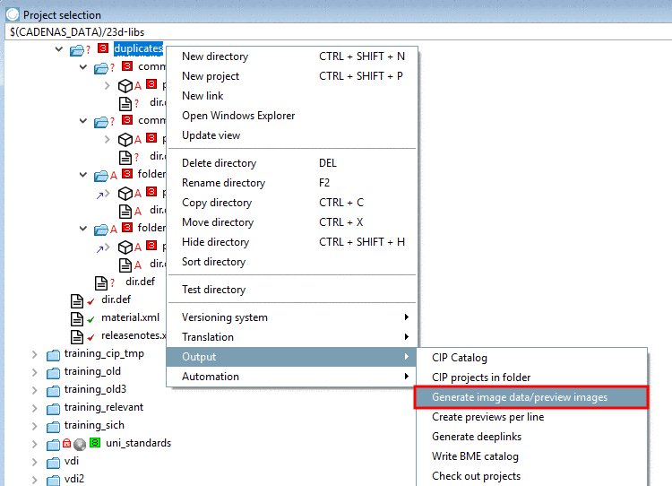 On the desired directory (catalog root directory or subdirectory), under Output, execute the context menu command Generate image data/preview images.