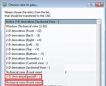 Furthermore the technical views are displayed in the dialog box and can also be transferred to the CAD system.