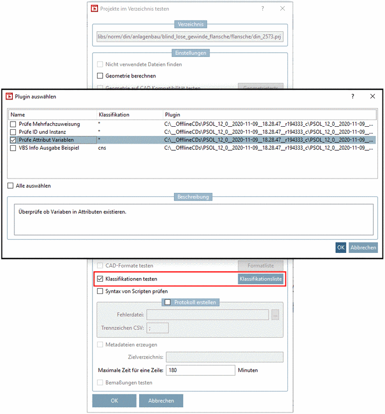 Use case for the plugin "Check attribute variables": When subsequently editing projects and renaming variables (e.g. variable for order number) sometimes someone may forget to adjust the variable mapping of the classification.