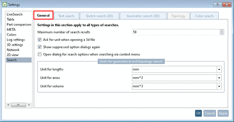 If the layout settings such as color of columns or text (as displayed in the Part view by default) shall also be displayed under Search results (mode Details and Table), activate the option Use table settings for ERP columns.[123]