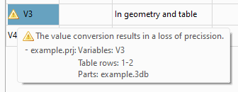 Le modifiche vengono controllate e i problemi di conversione vengono visualizzati nel tooltip (punto esclamativo giallo all'inizio della riga).