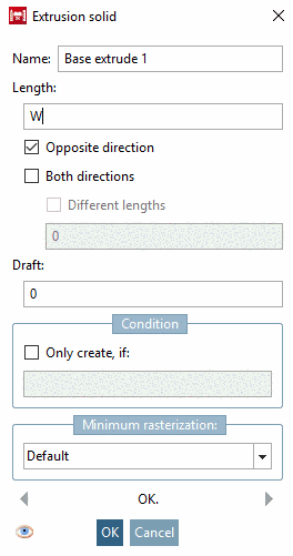 -> The command Extrude... opens the dialog box Extrusion solid.