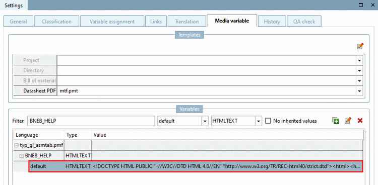 The following explains how to create Media Variables in PARTproject. Alternatively they could also be created via PARTtemplateDesigner (see Chapter 10, PARTtemplateDesigner - Create datasheets ).