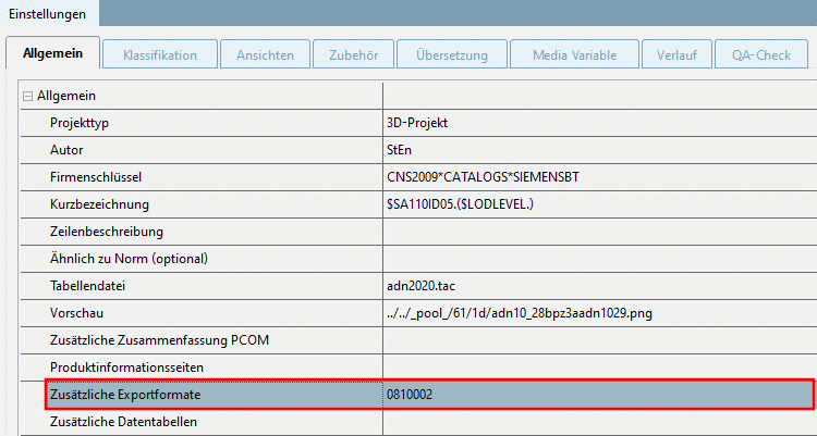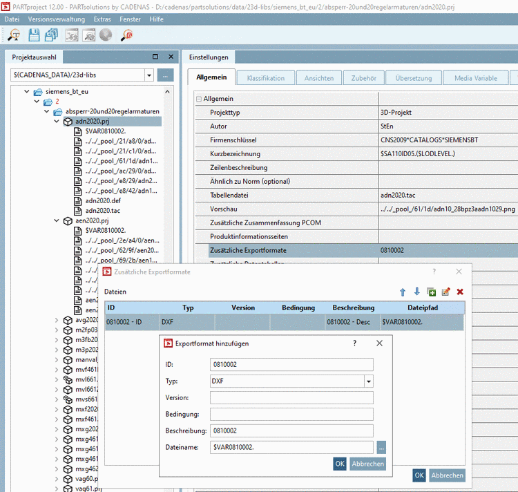 Select the project to which you want to assign a certain symbol as additional export format. (In this example "c2fvvi412020.prj")