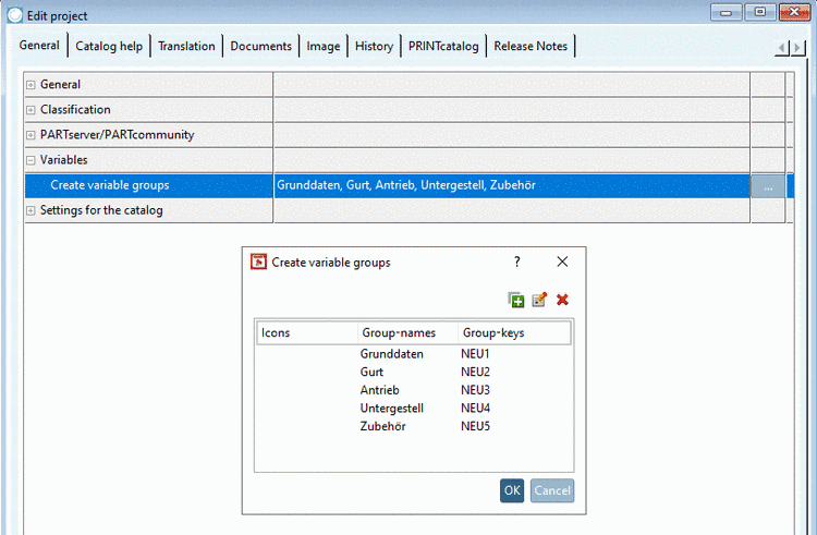 Via plus icon create the desired variable groups and confirm with .