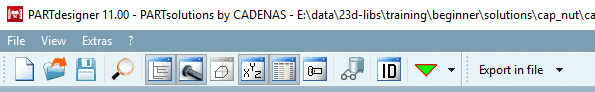 Under the menu bar you can find Standard and Export toolbar with following buttons: