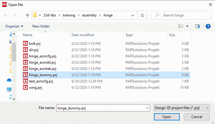 Select a Project file (*.prj) and confirm by clicking .