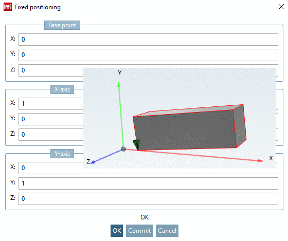 In the example above, the part was moved 5 units to the right on the x-axis and at level x-y (z=0) with vector (1; 0,1) moved upwards. In respect to the orientation to the y-axis, no changes were made.