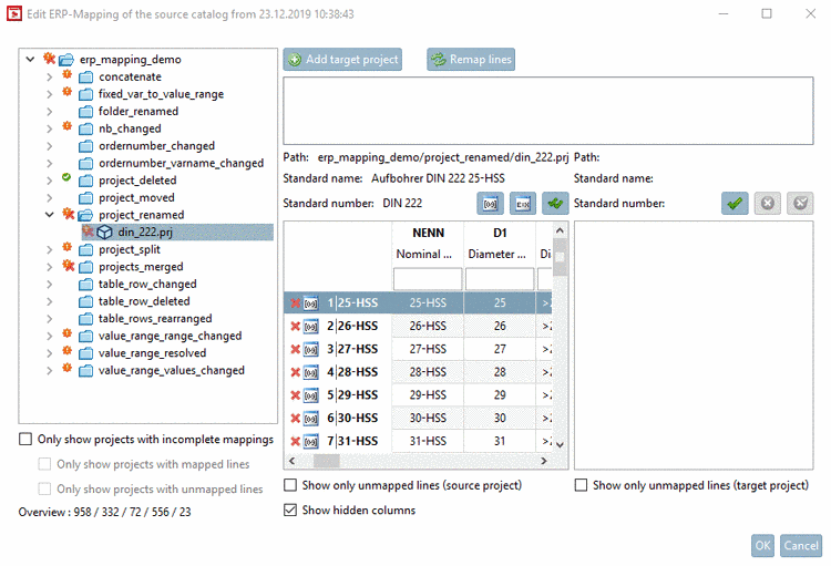 Supposed the changes would not have been recognized automatically, then in the right table no project would be shown.
