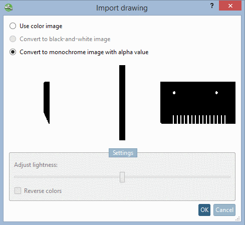 If the Convert to black-and-white image option is activated, you can optionally use the Reverse colors and Adjust lightness function before the import.